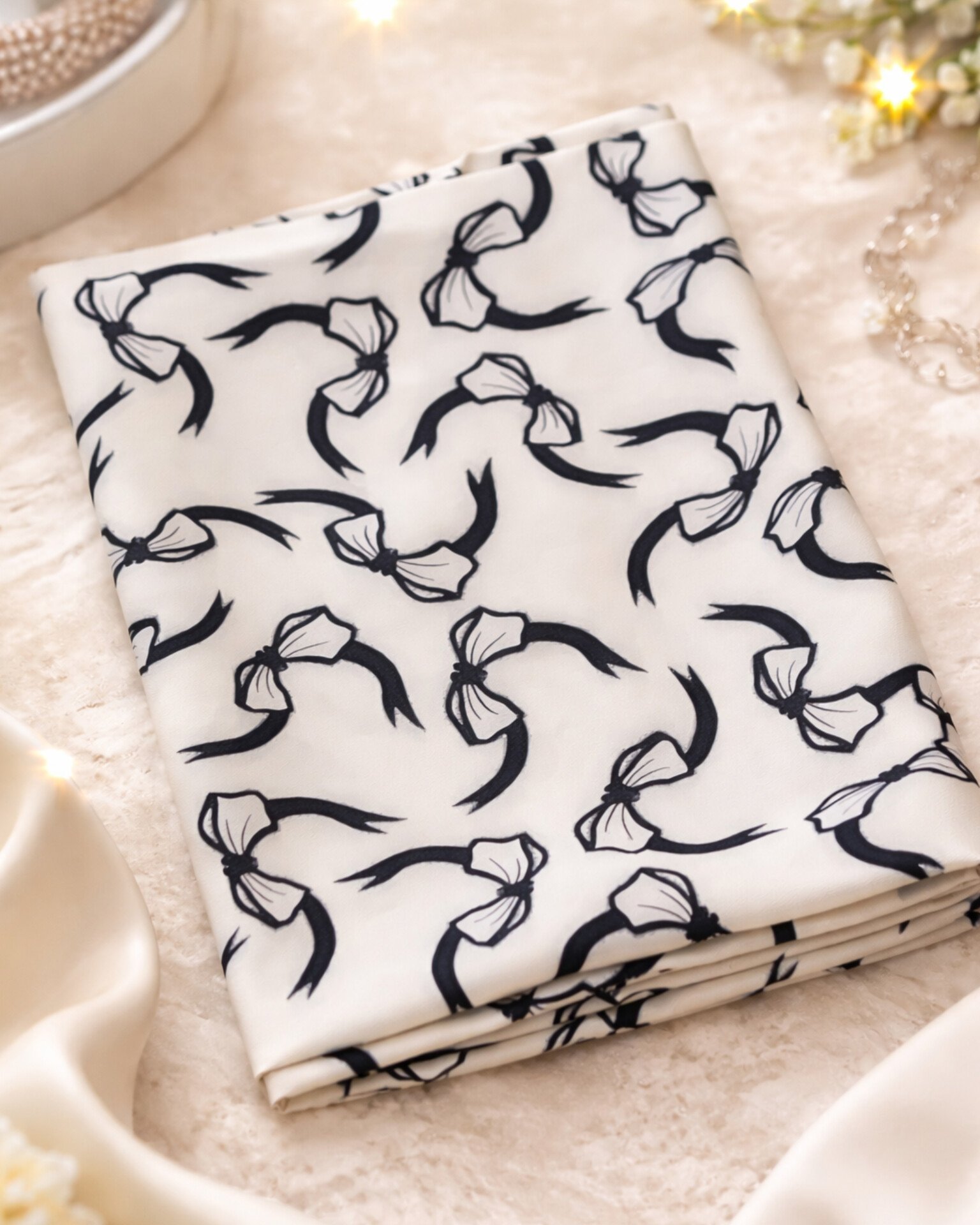 قماش أنيق بملمس ناعم ولمعة خفيفة تعكس الفخامة والرقي، مناسب لتفصيل المخاوير والفساتين الراقية والإطلالات المميزة.