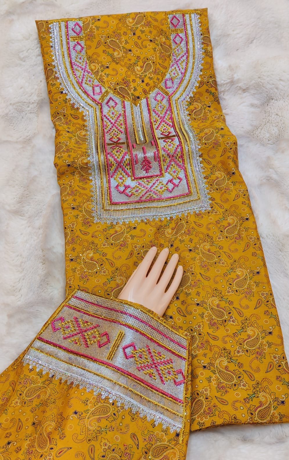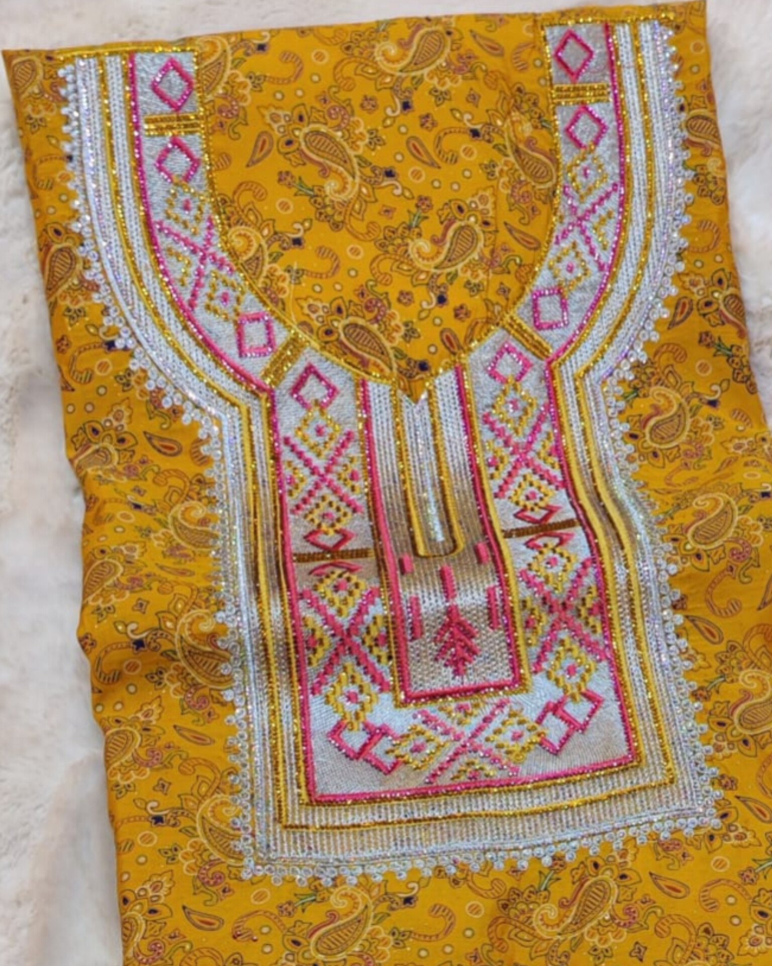 مصنوعة من قماش قطن كشميري ناعم ومريح، بخامة خفيفة مناسبة للبس اليومي والزيارات والمناسبات البسيطة. يتميز الموديل بتطريز سوري راقٍ على الصدر والأكمام يمنح المخور لمسة فخامة وجمال ملفت.