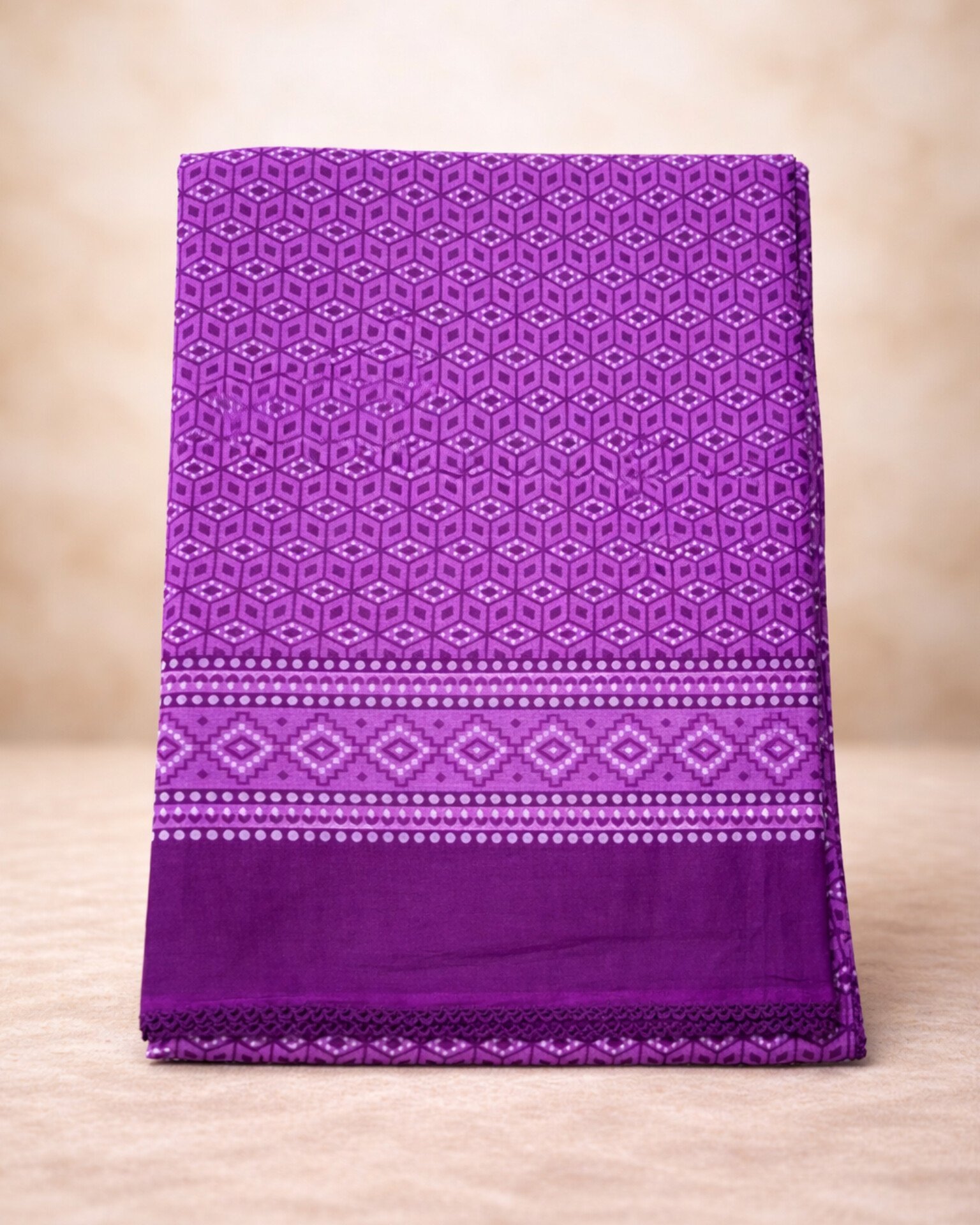 شيل قطن لندني بالقروشيه نقشة هندسية باللون البنفسجي