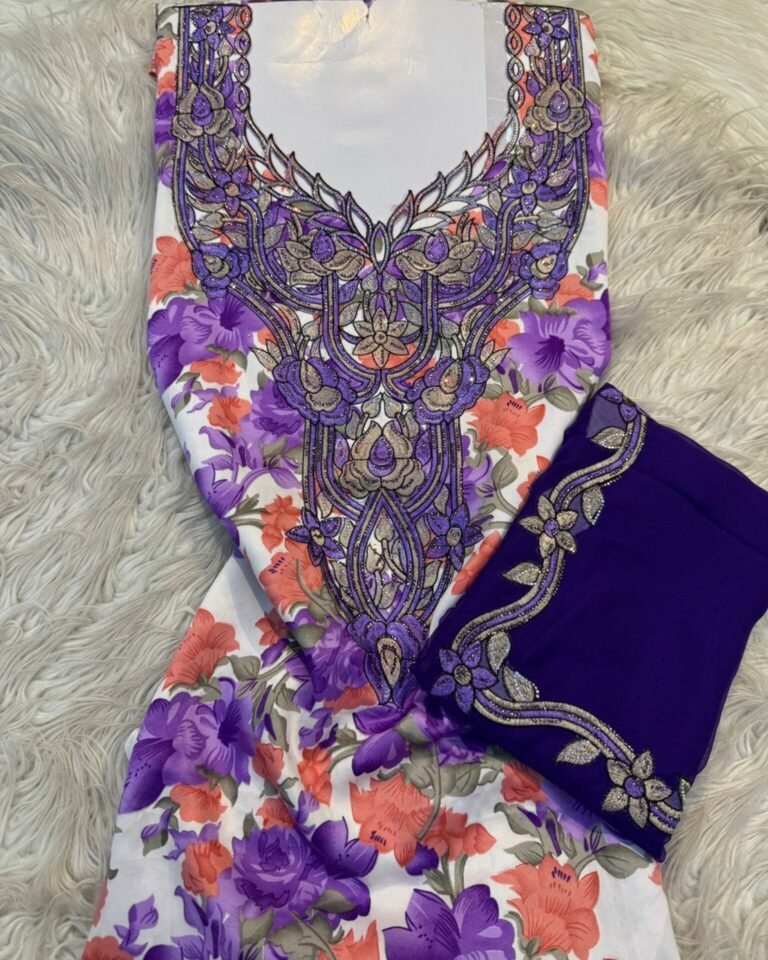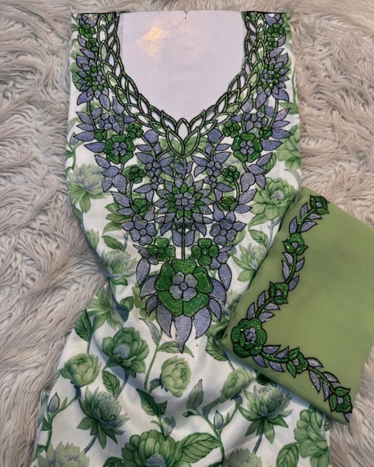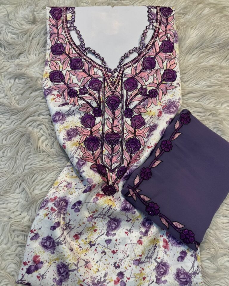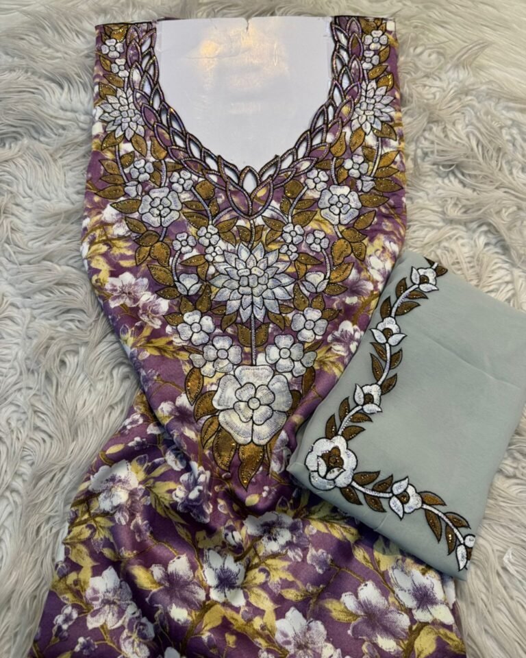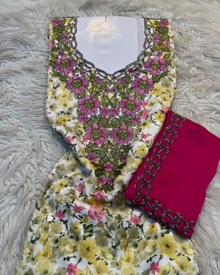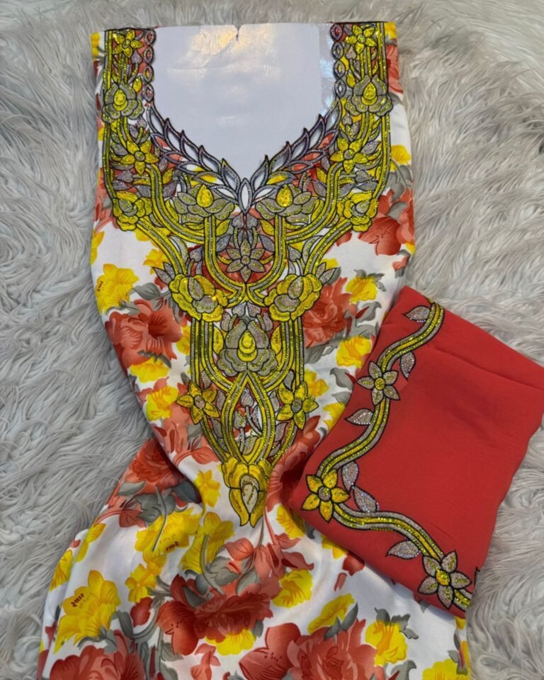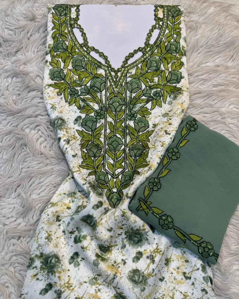 مخاوير شيفون مطرزة للبنات (خردلي)