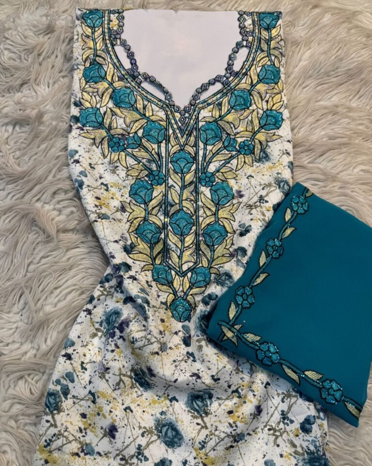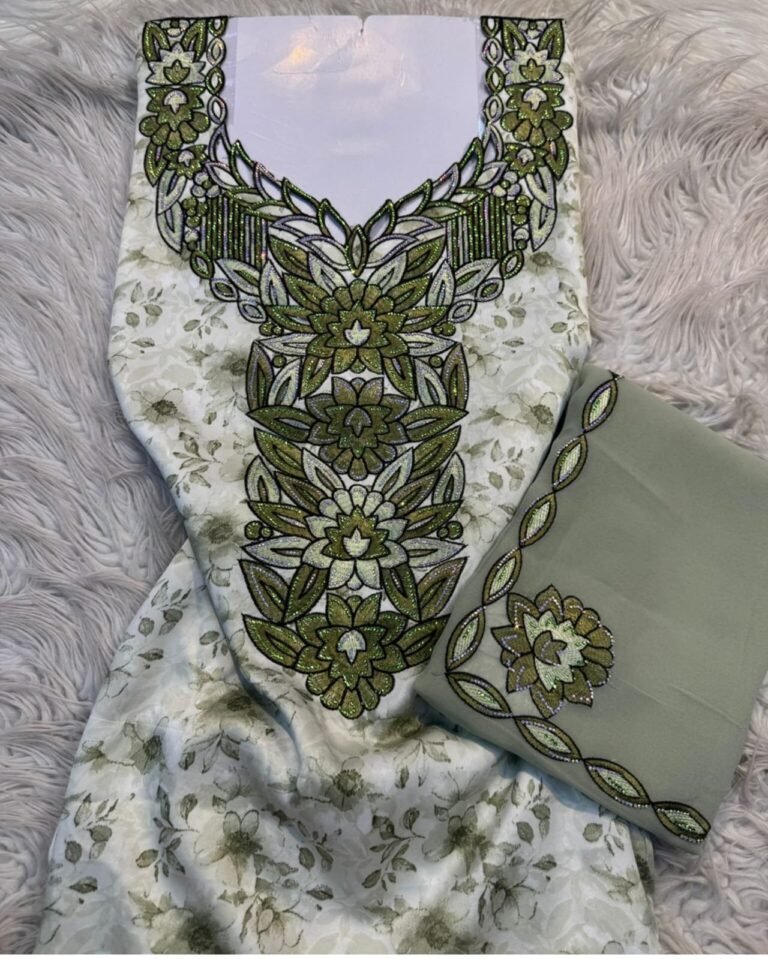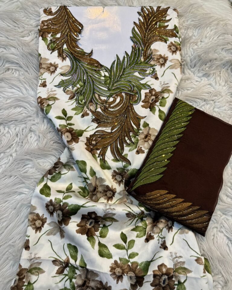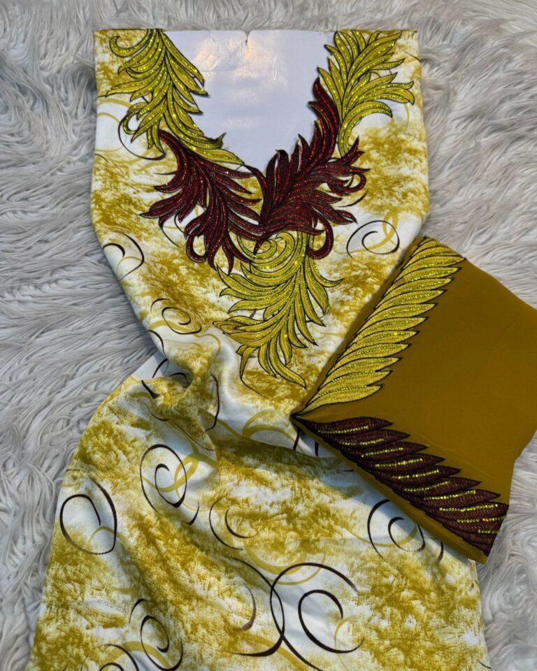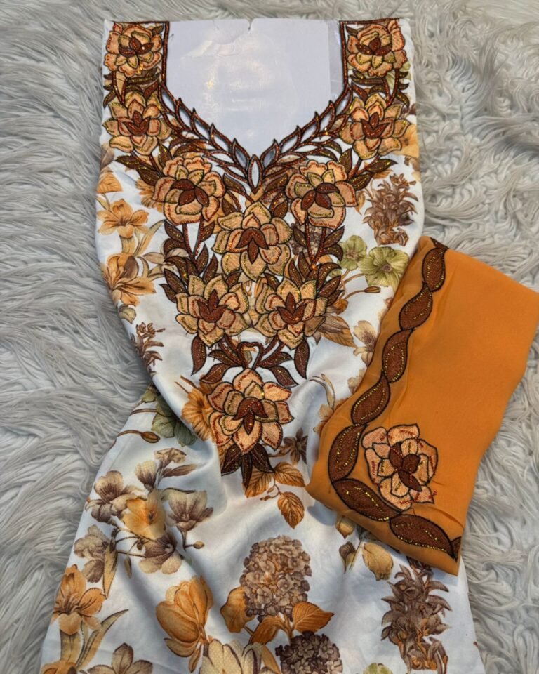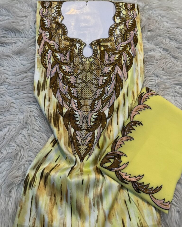 مخاوير شيفون مطرزة للبنات (خردلي)