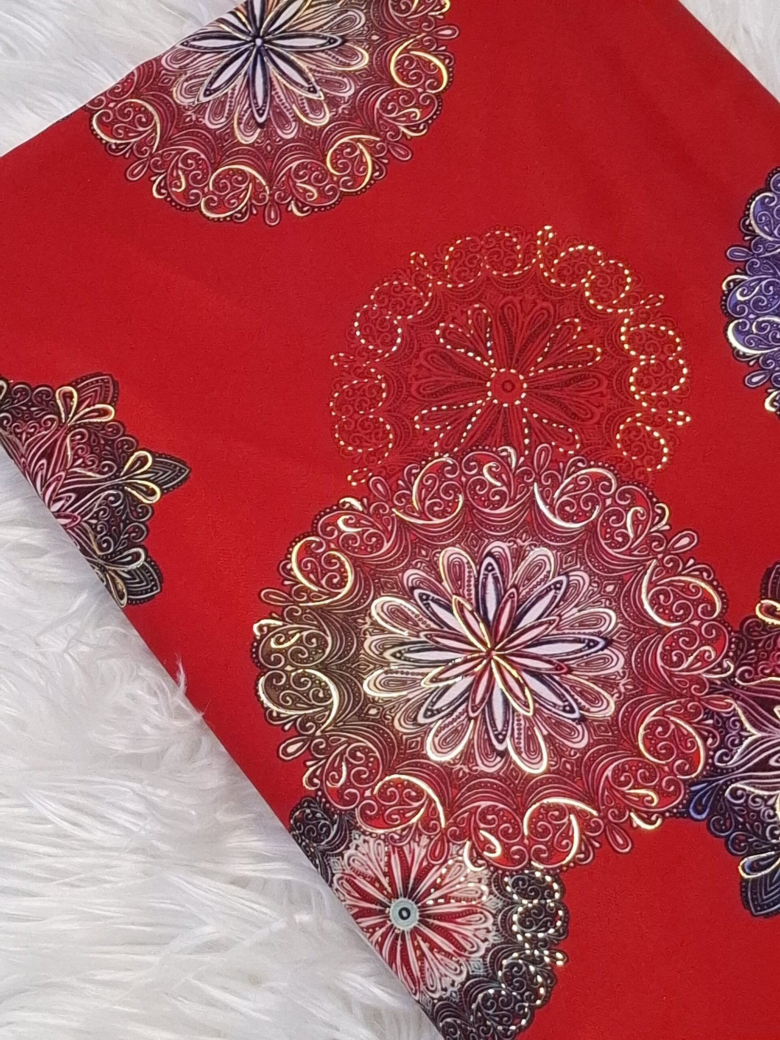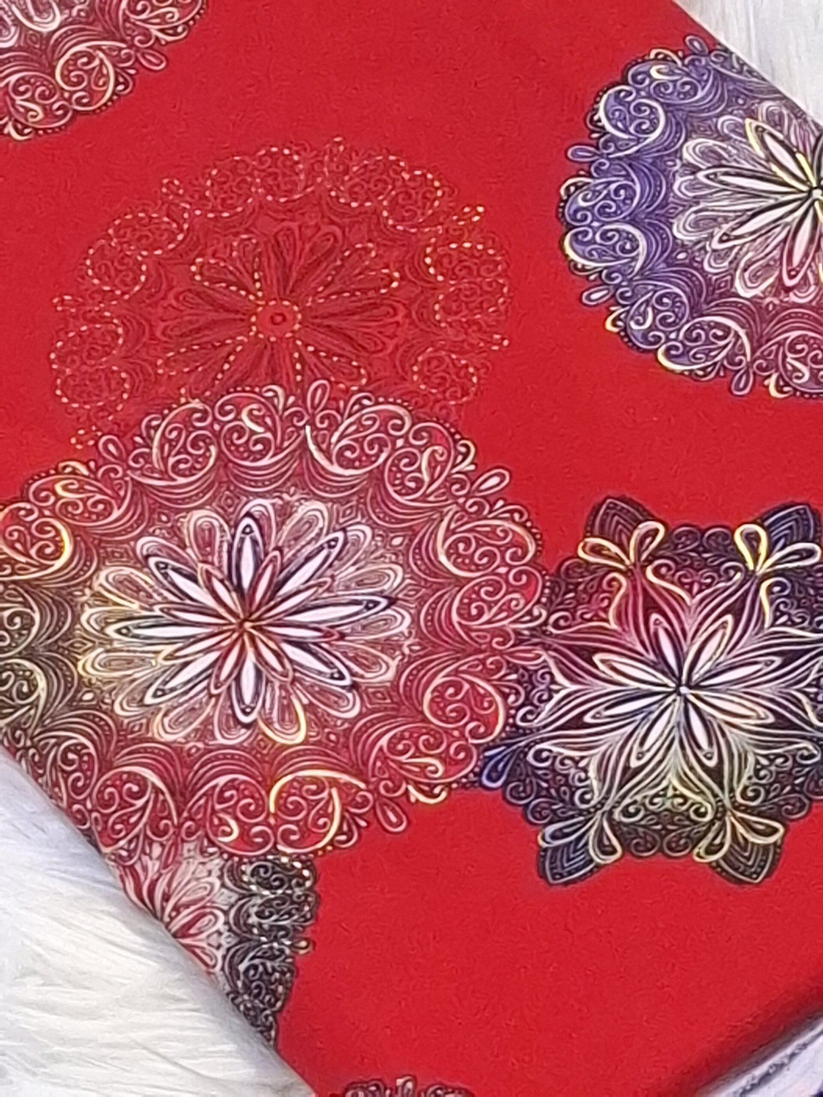 تضفي ألوانه الزاهية حيوية وأناقة على التصميم، مع وضوح ممتاز للنقش وثبات في اللون، ليبرز جمال القطعة سواء في الاستخدام اليومي الراقي أو المناسبات الخاصة. كما يوفر توازنًا عمليًا بين الراحة والمتانة، مما يجعله مناسبًا للتفصيل المتقن الذي يحافظ على شكله مع كثرة الاستخدام.