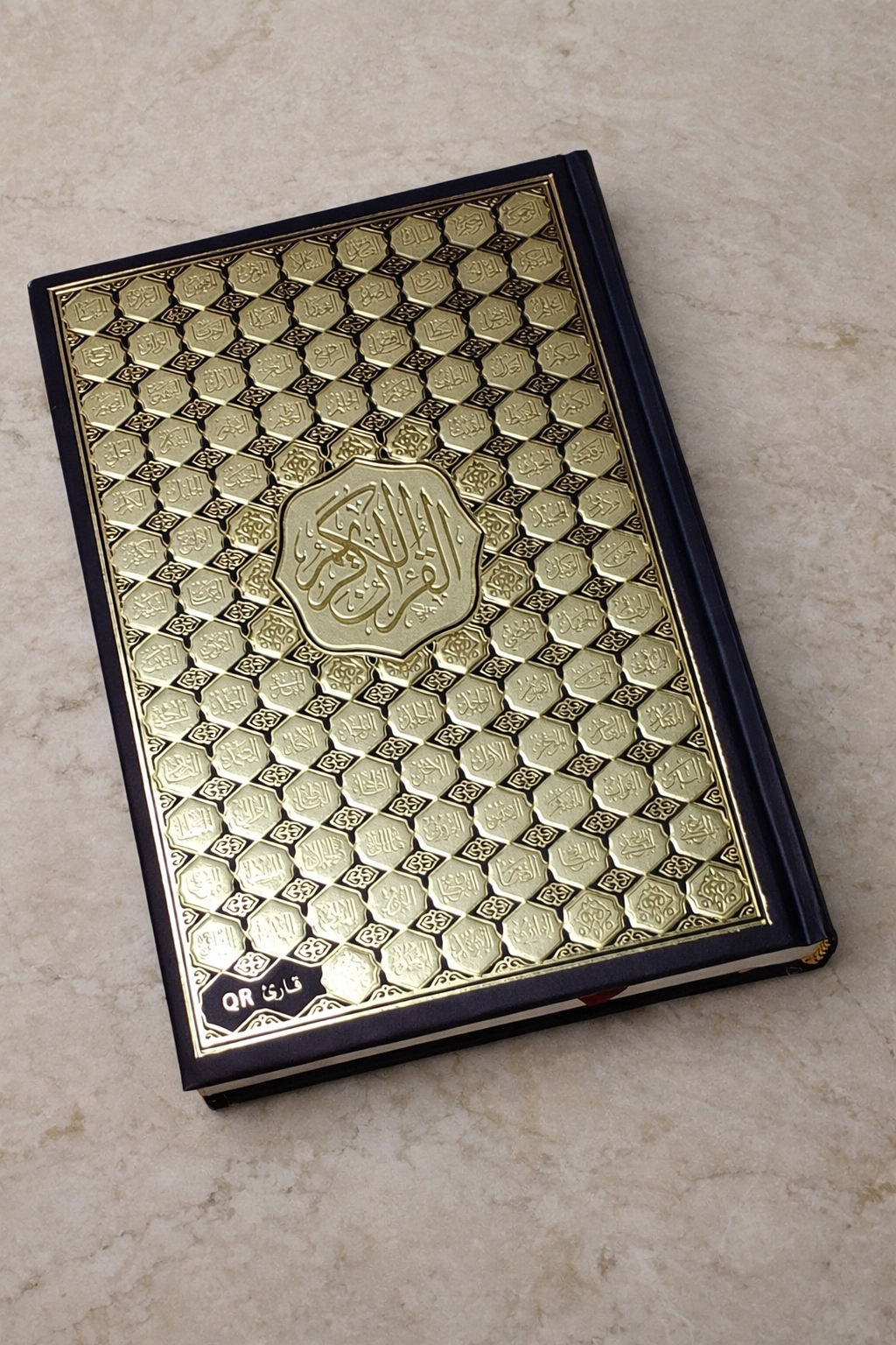 مصحف فاخر بطباعة حديثة واضحة ومريحة للعين، يتميز بجودة ورق عالية ولمسة نهائية أنيقة تعكس جمال وروحانية كلمات الله تعالى.