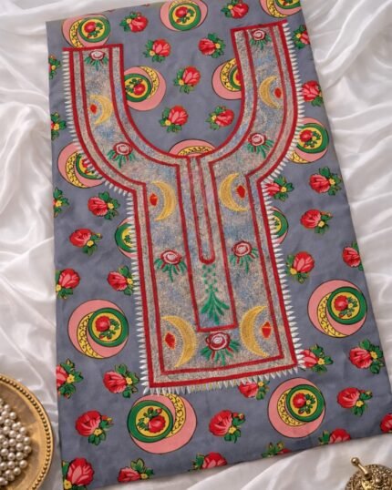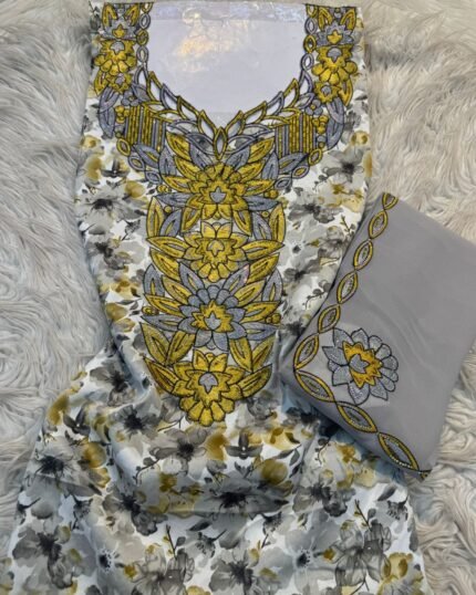 تأتي النقشة بطابع تراثي متوازن مع تطريز مرتب يبرز جمال التصميم دون مبالغة، ليكون مناسبًا للاستخدام اليومي.